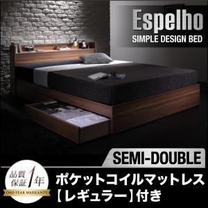 - 収納ベッド セミダブル【Espelho】【ポケットコイルマットレス:レギュラー付き】 フレームカラー:ウォルナットブラウン マットレスカラー:ブラック ウォルナット柄/棚・コンセント付き収納ベッド【Espelho】エスペリオ