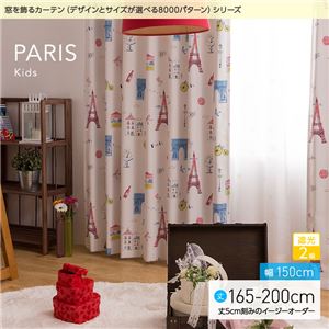 - 窓を飾るカーテン(デザインとサイズが選べる8000パターン)キッズ 子供部屋 PARIS(パリス) 遮光2級 (AL) 幅150cm×丈205cm(2枚組) ブルー