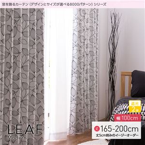 - 窓を飾るカーテン(デザインとサイズが選べる8000パターン)モダン LEAF(リーフ) 遮光2級 (AL) 幅100cm×丈180cm(2枚組) ブラック