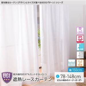 - 窓を飾るカーテン(デザインとサイズが選べる8000パターン)UGI S 紫外線約97%カット 日本製 遮熱レースカーテン (AL) 幅150cm×丈138cm(2枚組) 遮像 ミラー 保温 形態安定 ホワイト