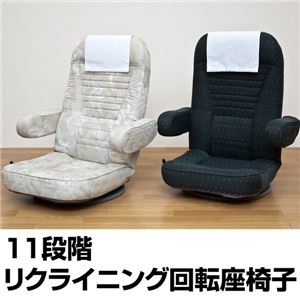 - 11段ギア/360度回転式リクライニング座椅子 合成皮革使用 ボックス/肘付き ベージュ