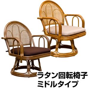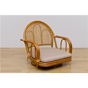 - 360度回転ラタン座椅子 【1脚】 【ミドルタイプ】 木製(天然木) クッション/肘付きハニー 【完成品】