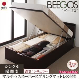 - 収納ベッド レギュラー シングル【縦開き】【Beegos】【マルチラススーパースプリングマットレス付】 ホワイト 収納ヘッドボード付きガス圧式跳ね上げ収納ベッド【Beegos】ビーゴス