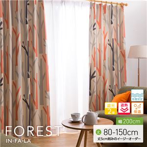 - 窓を飾るカーテン(デザインとサイズが選べる8000パターン)インファラ FOREST(フォレスト) 遮光2級 遮熱 保温 形態安定 (AL) 幅200cm×丈85cm(1枚) オレンジ
