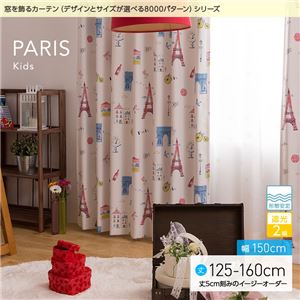 - 窓を飾るカーテン(デザインとサイズが選べる8000パターン)キッズ 子供部屋 PARIS(パリス) 遮光2級 形態安定 (AL) 幅150cm×丈145cm(2枚組) グリーン