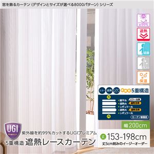 - 窓を飾るカーテン(デザインとサイズが選べる8000パターン)UGIPremium 紫外線約99%カット 日本製 5重構造 遮熱レースカーテン (AL) 幅200cm×丈168cm(1枚) 遮像 ミラー 保温 ホワイト