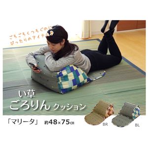 マリンデザインの明るくシンプルない草クッションです。組み合わせを変えることでお好みの高さに調整できます。胴部には、筒状の綿を使用しています。適度な凹凸により通気性があります。表面のい草によってさらっと快適にくつろげます。