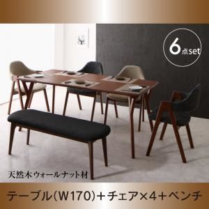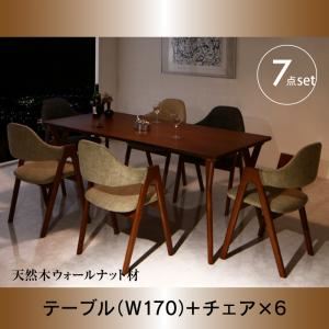 - ダイニングセット 7点セット(テーブル+チェア6脚) 幅170cm テーブルカラー:ウォールナットブラウン チェアカラー:チャコールグレー6脚 天然木ウォールナット材 モダンデザインダイニング WAL ウォル