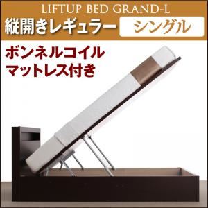 - 収納ベッド レギュラー シングル【縦開き】【Grand L】【ボンネルコイルマットレス付】 ホワイト 新開閉タイプが選べるガス圧式跳ね上げ大容量収納ベッド【Grand L】